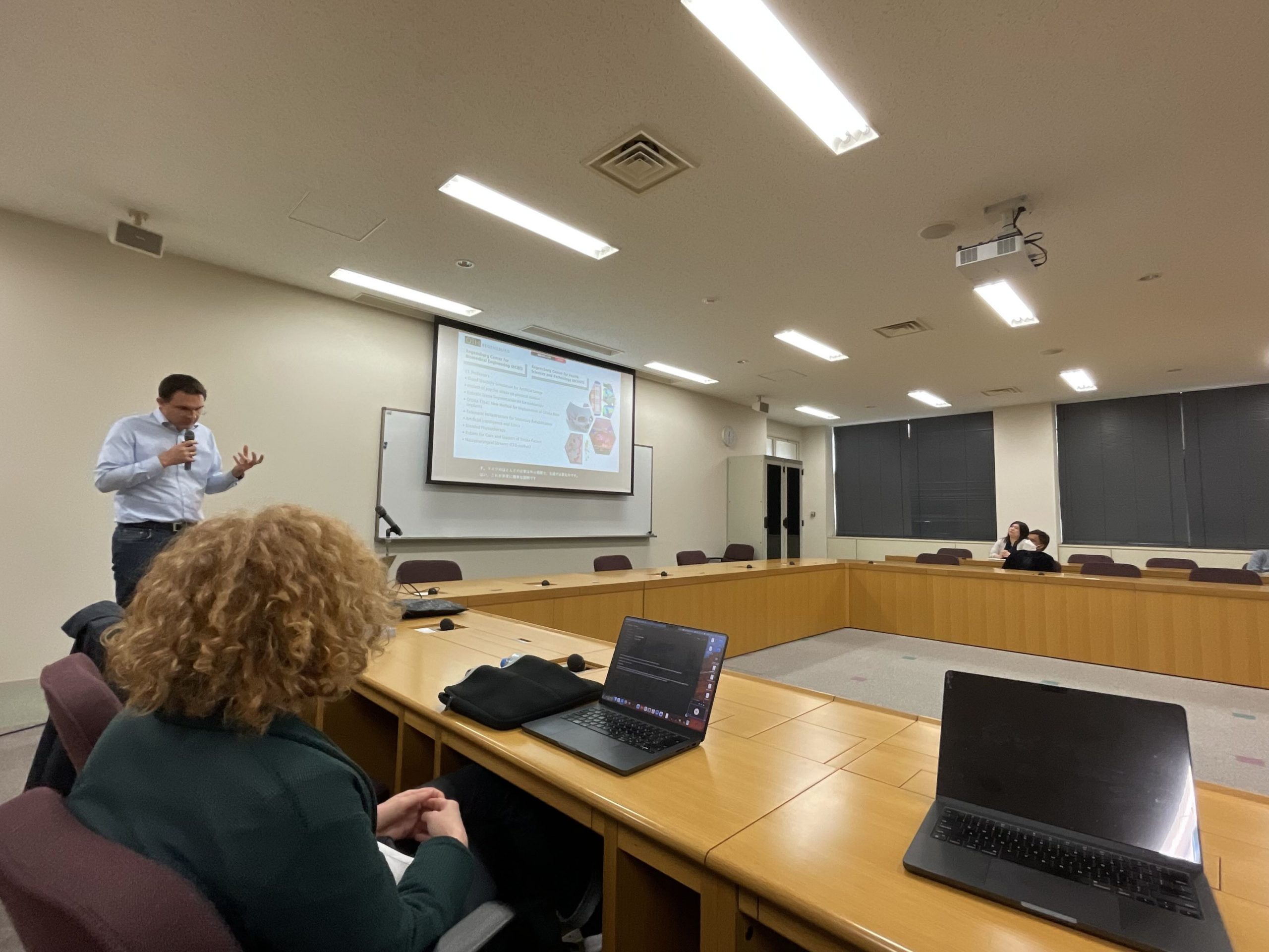 教授は、同大学の国際教育プログラム統括コーディネーターを務められています。今回は、本学部教員に向けて「OTH レーゲンスブルク大学と岩手県立大学ー留学パスウェイと連携の選択肢ー」と題して、同大学の学生交流制度や大学館パートナーシップを含む国際交流プログラムについてご紹介いただきました。その後、橋本学部長を表敬訪問され、今後の学術連携や国際交流の可能性について話し合われました。